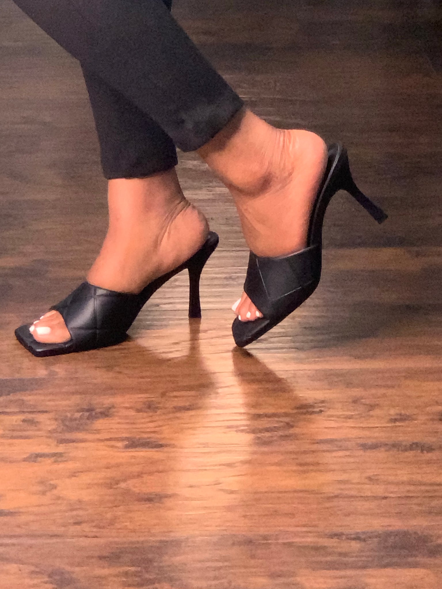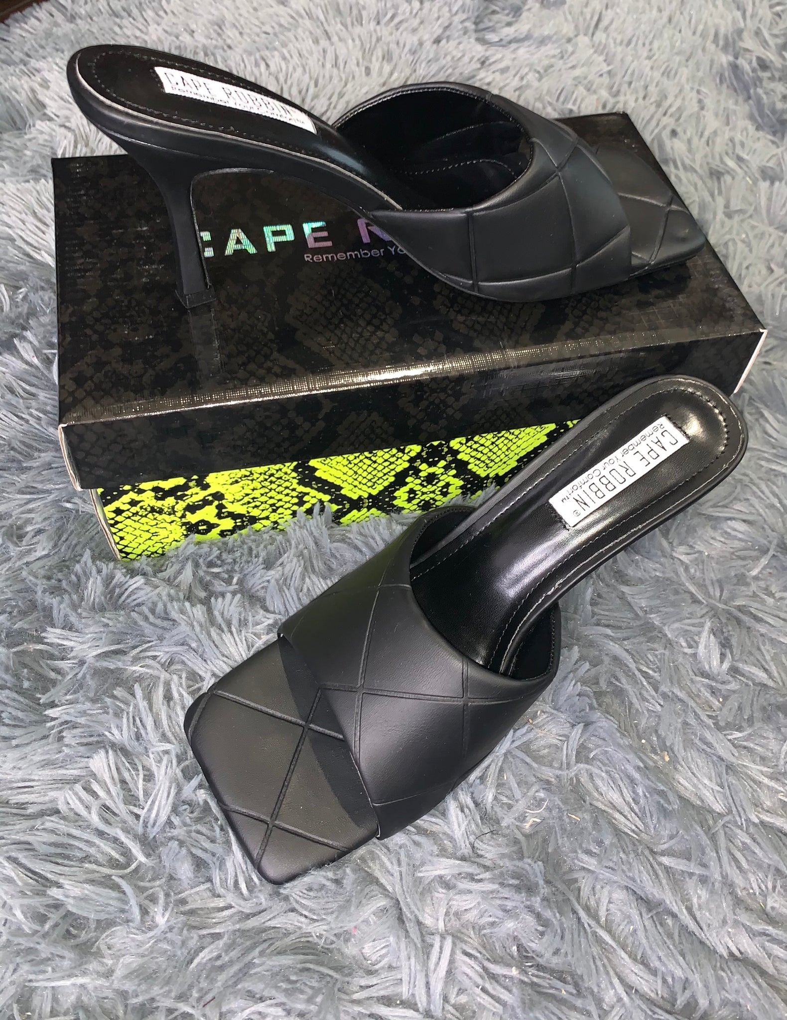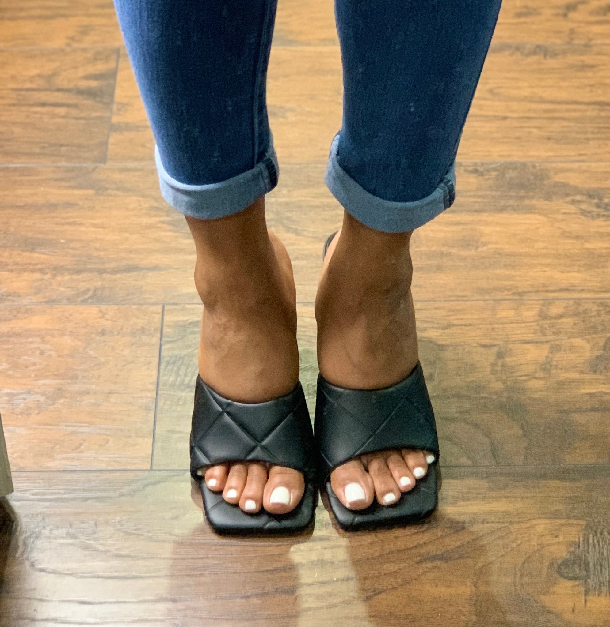 Black quilt pattern mule heel. Just in time for summer. This shoe transitions effortlessly from day to night.